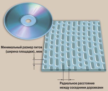 | Радиальное расстояние между соседними дорожками, мкм | 1,6 | 0,74 | 0,32 |