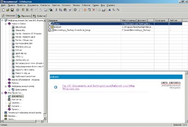 Например, большинству людей (не только менеджеров) не раз приходилось сталкиваться с проблемой организации ссылок на самые различные файлы с комментариями к каждому. Да еще и с группировкой по темам. Конечно, можно создавать отдельные папки для текстовых документов, особую папку в «Избранном» для веб-ссылок и проч. Однако это не будет способствовать организации информации. В Info.Express ссылки и целые документы, сохраненные веб-страницы объединяются в один большой раздел-проект. При этом нет никаких ограничений на тип файла. Это может быть даже аудио- или видеозапись относящегося к делу разговора или события. Следует учесть, что в программе сохраняются только ссылки на выбранные файлы, их местоположение на диске не меняется.
