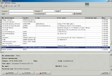 Кроме того, в программе существует адресная книга сотрудников предприятий с возможностью ввода как стандартных анкетных и контактных данных, так и различной дополнительной информации (характеристика, личные качества и проч.). Непосредственно из программы возможна печать адресов на конвертах для выбранных контактов. Это бывает очень полезно при рассылке приглашений, прайс-листов, поздравлений и т.д.