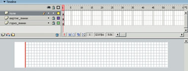 В этом примере мы не станем подробно объяснять всю подноготную выполняемых ниже действий, поскольку этому будут посвящены следующие уроки. Сейчас же просто сосредоточьтесь. На первом кадре слоя вертик_линии нажмите