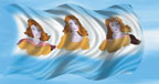Прежде всего надо подобрать подходящую для флага эмблему. Я остановил свой выбор на рисунке моей дочери Маши, нарисовавшей девочек (рис. 6, вверху).