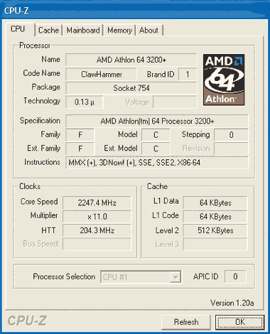 | Разброс частот работы процессора AMD Athlon 64 3200+ |