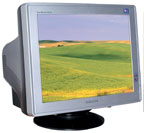 Этот монитор обладает наименьшими габаритами и энергопотреблением — всего 75 Вт. Да и внешне смотрится довольно привлекательно благодаря скругленным граням и тонкой окантовке экрана. В нем используется трубка производства Philips с теневой маской. Передняя панель украшена рекордно малым числом кнопок управления — всего три обеспечивают очень удобную работу с меню настроек, которое хотя и не отличается богатством функций (в частности, нет настройки сведения), зато по удобству использования и продуманности навигации было признано нами одним из лучших. Монитор имеет функцию LightFrame 3 для резкого увеличения яркости как всего экрана, так и отдельных окон при просмотре фото и видео.