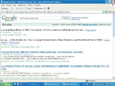 2 В результатах запроса «1967 Detroit race riots» указано количество материалов с точным соответствием искомой фразе.