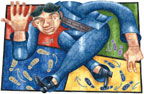 В Windows 98 щелкните правой кнопкой на панели обычных кнопок (той, что начинается с кнопки «Назад») и проверьте, выключена ли функция «Подписи к кнопкам» (при наличии подписей кнопки становятся совсем уж огромными). В Windows 2000 и XP щелкните правой кнопкой мыши на панели обычных кнопок и убедитесь в отсутствии опции «Закрепить панель инструментов». Во всех версиях подцепите левую границу панели кнопок и переместите ее в нужное вам место. Панель кнопок может находиться в одной строке с панелью меню, а также допускается размещать в одной строке две или более панели инструментов. Удовлетворившись результатом перестановки в Windows XP, снова щелкните правой кнопкой на панели кнопок и включите функцию «Закрепить панель инструментов». Щелкнув на символе двойного шеврона (>>), вы получите доступ к кнопкам, оказавшимся за правой границей панели.