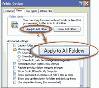Проводник Windows предоставляет много различных способов, помогающих просматривать файлы: большие (плитка) и маленькие значки, эскизы страниц, элементы списка, строки таблицы (этот вид папки предпочитаю я). Чтобы задать табличный вид для всех папок, сперва используйте меню «Вид», установив с его помощью нужный тип отображения для какого-либо конкретного окна папки. Затем в Windows 98 выберите опции «Вид? Свойства папки?Вид?Как у текущей папки». В остальных версиях Windows надо указать «Сервис? Свойства папки?Вид?Как у текущей папки», а в XP «Применить ко всем папкам» (рис. 3). Если вы передумаете и решите вернуться к тому виду, который изначально был задан по умолчанию, щелкните на кнопке «Сброс для всех папок» (в Windows 98 — «Сбросить для всех папок»).