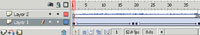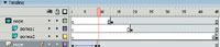 Принцип действия всех трех штор одинаков. Создайте прямоугольник цвета фона и в первом ключевом кадре расположите его так, чтобы он перекрывал текст, а во втором сожмите и установите за словом — как будто мы отодвинули закрывающую окно штору. Можете создать отдельный символ «штора» или поступить, как я: выполнив один раз движение Motion Tween, скопировать кадры и вставить их в нужное место на новом слое. Для этого проделайте следущее.
