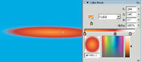 - 3. Поработайте со вторым слоем Masked (Маскировано). С ним придется повозиться подольше. Именно он определяет, что же будет видно сквозь контур. Я предлагаю создать прямоугольник и залить его радиальной градиентной заливкой, причем таким образом, чтобы его края были прозрачными (рис. 8). Не забывайте и про параметр Alpha на панели Color Mixer (Цветовой микшер). Как видите, в результате всех действий фигура перестала быть похожей на прямоугольник и превратилась в овал.