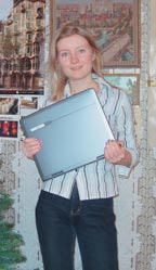 Главный приз, ноутбук iRU, был практически вручен Светлане Семавиной. «Практически», потому что Светлана аккурат в этот день училась чему-то в Барселоне (похоже, у человека белая полоса в жизни), поэтому получила она его позже в редакции