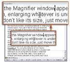 Чтобы начать работу с утилитой, нажмите OK. По умолчанию окно экранной лупы появляется в самом верху экрана, отображая в увеличенном виде все, что находится вблизи указателя мыши. Если вас не устраивает размер этого окна, поставьте указатель мыши на его границу и раздвиньте окно или сделайте его поменьше. Для перемещения окна поместите внутри него указатель мыши и перетащите окно к любому краю экрана. Легко также сделать окно лупы свободно плавающим в центре экрана.