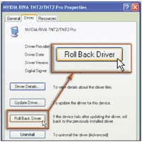 К счастью, Windows сохраняет старый драйвер, давая тем самым возможность исправить случившийся ляп. Войдите в систему как администратор, откройте Проводник, щелкните правой кнопкой мыши на значке «Мой компьютер» и укажите пункт «Свойства». (Если же на клавиатуре есть клавиша , просто задайте +.) Выберите закладку «Оборудование» и щелкните на кнопке «Диспетчер устройств». (Или укажите + R, введите команду devmgmt.msc и нажмите .) В окне Диспетчера устройств отправляйтесь к устройству с проблемным драйвером. Дважды щелкните на его значке и отметьте закладку «Драйвер». Щелкните на кнопке «Откатить», после чего следуйте экранным указателям.