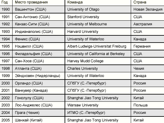 Абсолютные чемпионы мира по программированию (1990—2005 гг.)