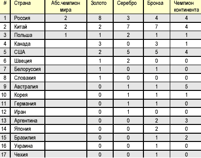 Распределение медалей и титулов среди стран-участниц финалов за последние пять лет (2001—2005)