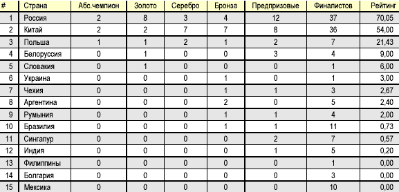Достижения команд, представляющих страны офшорного программирования (2001—2005)