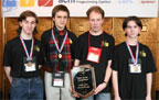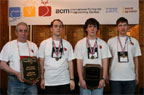 | Золотые медали команды ИТМО в Шанхае (Сергей Оршанский, Дмитрий Павлов, тр. Андрей Станкевич, Павел Маврин) |