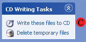 Скопируйте изображения на CD. Чтобы передать слайд-фильм другим пользователям Windows XP, поместите его слайды в отдельную папку и щелкните мышью на пункте «Копировать все объекты на компакт-диск» (Сору to CD) в списке «Задачи для изображений» (Picture Tasks), обозначенном на рисунке буквой В. Потом вставьте чистый CD-ROM в дисковод и дважды щелкните мышью на его значке в меню «Мой компьютер» (My Computer). В окне «Задачи для записи CD» (CD Writing Tasks) укажите пункт «Записать файлы на компакт-диск» (Write these files to CD), которому на рисунке присвоена буква С. Записанный слайд-фильм автоматически будет проигрываться всякий раз, когда вы вставляете диск в CD-дисковод.