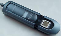 Устройство представляет собой USB-накопитель на флэш-памяти (в просторечии «флэшка»). Но с небольшими дополнениями. По дизайну оно ненамного отличается от внешних накопителей других производителей: небольшие размеры, закругленные формы. Но есть и кое-что интересное — в комплекте помимо самого накопителя присутствует док-станция для соединения с USB, на диске кроме драйверов записано полноценное программное обеспечение, а на корпусе самой «флэшки» расположен небольшой квадратный сенсор для считывания отпечатков пальцев — дактилоскоп. Если использовать Micro Vault без док-станции и не устанавливать ПО, то она превращается в обычный накопитель, работающий по протоколу USB 2.0. Но если задействовать программу Fingerprint (т.е. «Отпечаток пальца»), то ситуация в корне меняется. После установки ПО требует произвести начальные настройки: завести пользователя и установить пароль. Затем переходим к самому интересному: запускаем Fingerprint registration wizard и выбираем палец, с помощью которого будет открываться доступ к данным. Первый раз надо несколько раз приложить палец к считывающему устройству, данные об отпечатке заносятся во внутреннюю базу программы. Впоследствии при подключении «флэшки» к компьютеру через док-станцию программа будет автоматически запускаться и просить либо ввести пароль, либо приложить палец к считывающему устройству. Такой двойной способ доступа вполне логичен: даже если дактилоскоп на «флэшке» выйдет из строя, то всегда останется возможность добраться до информации. Но, с другой стороны, узнав пароль, злоумышленник получает доступ к данным в обход дактилоскопа, а одновременная аутентификация по паролю и отпечатку пальца не предусмотрена.