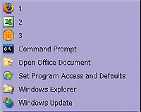 Для быстрого запуска приложений через Главное меню (оно же меню «Пуск») Windows используйте цифровые клавиши. Щелкните на кнопке «Пуск», выберите «Все программы» (или «Программы» в меню классического вида), найдите значок какого-либо из часто используемых вами приложений и перетащите его в верхнюю секцию Главного меню. Перед тем как отпускать кнопку мыши, убедитесь, что ее указатель находится между приложениями, перечисленными в этой секции (если они там вообще имеются) и что между значками этих приложений появилась черная линия, а если вы используете классическое меню, то нажмите клавишу . Теперь отпустите кнопку мыши, для того чтобы поместить ярлык для выбранного вами приложения в верхней части Главного меню. Отпустите клавишу , щелкните на новом ярлыке и задайте опцию «Переименовать», после чего добавьте перед именем приложения цифру (1 — для Firefox, 2 — для Excel и т.д., но только не используйте одну и ту же цифру дважды). В результате этого трюка, когда в следующий раз щелкнете на кнопке «Пуск» (или нажмете клавишу ), вы сможете использовать цифровую клавишу для запуска соответствующего приложения. Чтобы удалить ярлык, просто щелкните на нем правой кнопкой мыши и укажите «Удалить из этого списка» (или «Удалить» в меню классического вида).