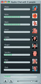 Компания Apple включила в систему Tiger свежую версию программы iChat AV. Главное (но не единственное) ее новшество — возможность проводить видеоконференции одновременно с четырьмя, а звуковые — с девятью партнерами.