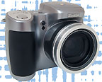 Этот аппарат, по нашему мнению, стоит на одном уровне с Canon IXUS i zoom. Он также предназначен для небольшой женской сумочки. Дизайнеры хорошо поработали над его внешним видом. Камера действительно адресована начинающим фотографам и на роль первого аппарата вполне подходит. В руке она лежит неплохо, но из-за обтекаемых форм не покидает ощущение, что аппарат того и гляди выскользнет из рук. По заверению производителя, корпус аппарата способен защитить от брызг нежную электронную начинку – такое свойство пригодится для сюемки в дождливую погоду. В выключенном состоянии обюектив закрыт крышкой, но стоит нажать на кнопку пуска, как аппарат приходит в движение, с приятным звуком откидывается заслонка и на свет тут же выскакивает небольшой обюектив. Очень удобен переключатель режимов. Для сюемки имеется 13 сюжетных программ, которых с лихвой хватит начинающему фотографу. Автоматика камеры работает неплохо, но все же частенько переэкспонирует картинку. Практически полное отсутствие хроматических аберраций обюектива при небольшой светосиле выгодно сказывается на сюемке контрастных обюектов. Да и с макросюемкой для любительского аппарата модель справляется отлично.
