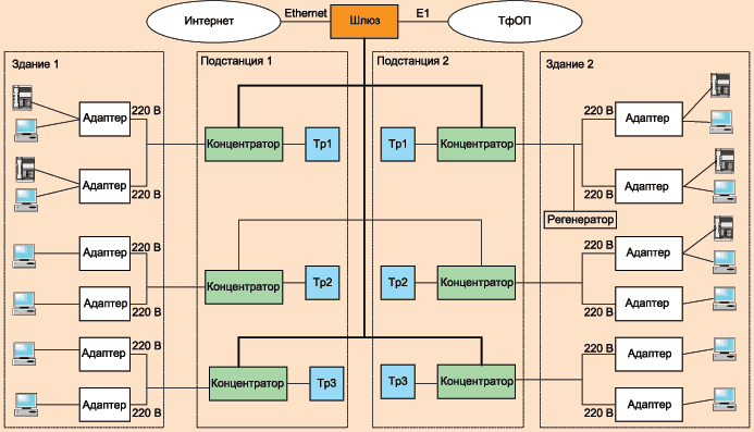 Рис. 3. Схема организации сети по электропроводке