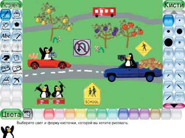 Графический редактор для самых маленьких, выполненный в игровом стиле с анимационными и звуковыми эффектами.