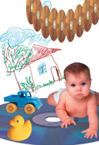 Кроме самой TuxPaint настоятельно рекомендую найти на сайте библиотеку небольших графических заготовок или, как их называют разработчики, штампов. По сути это изображения различных предметов быта и популярных объектов (вроде различных блюд, денежных знаков или планет). Инсталлятор TuxPaint Stamps занимает около 6 Мбайт, но при этом ваши возможности по созданию графических композиций значительно возрастут. Моя жена, например, обнаружила, что с помощью штампа «пучок салата» можно создать вполне фотореалистичную крону для дерева. Кроме того, нарисовав с ребенком несколько грядок с овощами, я выяснил, что малыш двух с половиной лет способен прекрасно запоминать названия объектов. А в три мы уже удивляли гостей, устраивая перекличку на параде планет солнечной системы.