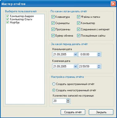 | LanAgent: настройка «Мастера отчетов» |