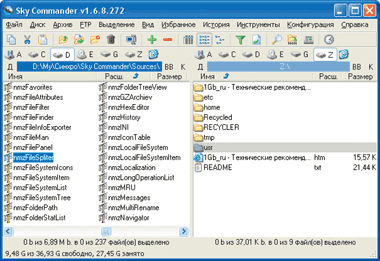 Для удобства работы с программой разработчики реализовали стандартные, привычные каждому пользователю возможности работы в ОС Windows, так что переучиваться не придется. Sky Commander поддерживает «горячие» клавиши Windows Explorer, выделение файлов мышью и технологию перетаскивания.