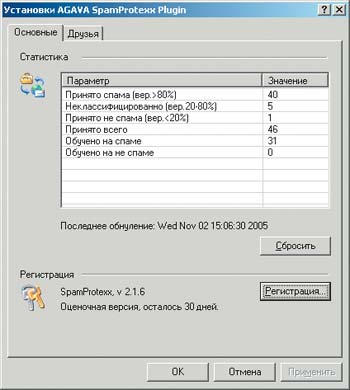 Интересно, что SpamProtexx не требует изменения настроек почтового клиента в отличие, например, от SpamPal (хотя там изменения и минимальны, они все же есть). Работая на уровне прикладных сетевых протоколов, SpamProtexx на лету перехватывает соединения с почтовым сервером, что делает его универсальным инструментом для любой почтовой программы.