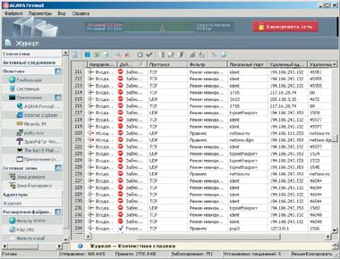 Сетевой брандмауэр AGAVA Firewall (AGFW) позволяет комплексно контролировать сетевую активность защищаемой системы — от фильтрации транслируемых по сети данных и их анализа до доступа к ней системных и пользовательских приложений. Логика его работы проста и следует канонам персональной сетевой защиты. Когда какая-либо программа впервые запрашивает доступ к Сети, то брандмауэр, блокировав ее исполнение, выясняет у пользователя, разрешается ли ей совершать подобные действия. Сохранив ответ, в дальнейшем он сам контролирует программу, не запрашивая пользователя. Но как только поведение программы или же один из ее компонентов изменятся, брандмауэр вновь заблокирует сетевую активность приложения до тех пор, пока не получит указание от пользователя.