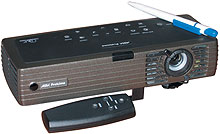 Назначение этого устройства такое же, как у продукта Epson, — это мобильный, но не микро- и не ультрапортативный проектор с поддержкой беспроводного интерфейса Wi-Fi (IEEE 802.11 b/g). При цене в 2000—2500 долл. вы получаете вполне достаточную для типовых презентаций яркость в 2000 ANSI-лм (радует совпадение заявленных и реальных характеристик).