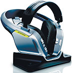 Модель Philips SHG 8100 представляет собой беспроводные радионаушники, оснащенные весьма интересной «геймерской» функцией. Большого размера, с мягким удобным оголовьем и крупными чашками «ушей», обтянутых синтетической тканью, они не вызывают дискомфорта даже при длительном использовании, а также довольно плотно сидят и, насколько это возможно, изолируют внешние шумы, не мешая наслаждаться воспроизводимым звуком. Так как модель беспроводная, то все «проводные» обязанности ложатся на базовую станцию, служащую одновременно и зарядным устройством. Она питается от сети переменного тока, а для подключения источников звукового сигнала снабжена популярными разъемами «тюльпан» и 3,5-мм jack. Передача звука от базовой станции осуществляется по трем каналам в диапазоне 863,5—864,5 МГц.