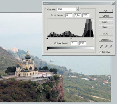 | Рис. 8. Коррекция фотографии с помощью команды Levels (Уровни) |