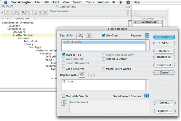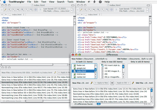 Сравнение в TextWrangler двух песен и поиск различий между ними