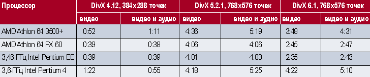 Результаты специализированных тестов - видеосжатие, время сжатия, мин:с
