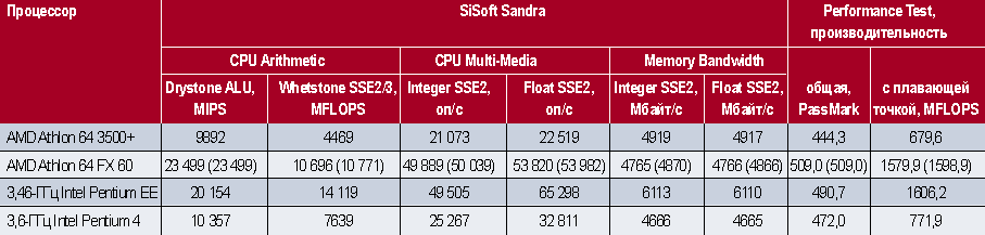 Результаты тестов SiSoft Sandra 2005 SP3 и Performance Test