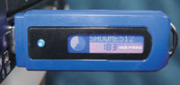 Внешне «флэшка» от A-DATA похожа на своих собратьев и представляет собой прямоугольный кирпичик синего цвета со слегка закругленными краями. Слева под защитным колпачком спрятан разъем для подключения к порту USB, а справа имеется небольшое кольцо для крепления нашейного шнурка. В центре расположен дисплей, обрамленный черной пластмассовой рамкой. На нижней боковой грани находится ползунок, блокирующий возможность записи. О работе устройства помимо дисплея сообщает синенький светодиодик слева от экрана.