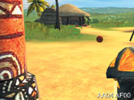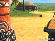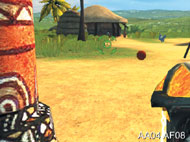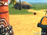 Заметить работу функции анизотропной фильтрации можно на фрагментах экранных снимков из игры Serious Sam 2. Для начала обратите внимание на нижние грани усеченной пирамиды на переднем плане. С отключенной фильтрацией хорошо видно сильное размытие текстуры на плоскостях, которые отображаются к нам под углом. Теперь взгляните на картинку в целом: столб, дорожка, кустарник, пальма, дом... Только с анизотропной фильтрацией мы видим четкие текстуры и качественное отображение даже самых мелких деталей.