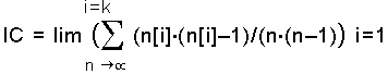 Для полностью случайного текста n[i]=n/k, i=1..k и, следовательно, IC=1/k, т.е. IC=0,038 при k=26. Если же брать только «осмысленные» тексты, то для немецкого и английского языков IC=0,065.