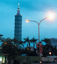 | Тайбэйская башня «101» в ночи |