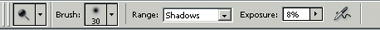 | Рис. 4. Панель Properties (Свойства) для инструмента Dodge (Осветлитель) |