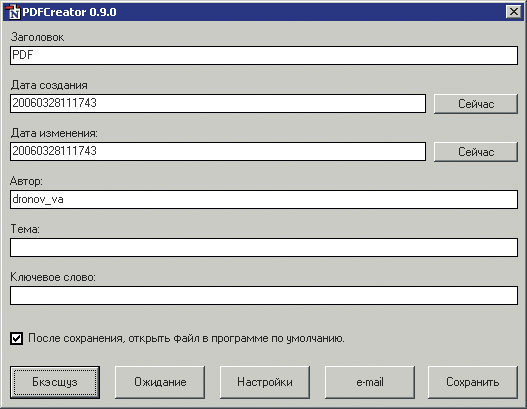 С помощью этого окна мы можем задать следующие параметры как создаваемого документа PDF, так и самой программы: