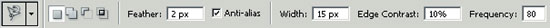 Feather (Растушевка) — когда задается данный параметр, то выделение получается с размытыми границами (по количеству заданных пикселов); установим его значение равным 2.