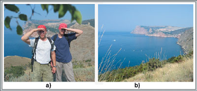 На рис. 3, а на передний план случайно попала ветка с листьями. Но поскольку фотоаппарат фокусировался не на ней, то листва получилась размазанной. В тот же день, но с другим ракурсом была сделана еще одна фотография (рис. 3, b). В качестве заплатки можно было бы, конечно, использовать небо и берег с данного снимка, но мы пойдем другим путем и попросту пересадим людей с одного снимка на другой. Чтобы успешно справиться с этим, надо освоить работу со слоями и инструментами выделения.