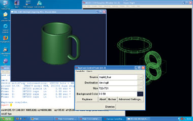 Иногда в списках команд встречаются небольшие ошибки-чертовщинки (два последних параметра в некоторых из них, возможно намеренно, переставлены местами), но локализовать их можно очень просто. Достаточно вместо полных команд со всеми аргументами давать первую часть, например один оператор, а его параметры вводить пошагово, отвечая на уточняющие вопросы. Выполнив все упражнения, вы получите трехмерную модель кружки практически совершенной формы. Результат при визуализации должен выглядеть примерно так, как на рис. 2.