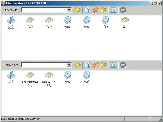 Режим обмена файлами нового вида очень удобен и аналогичен интерфейсу Проводника Windows, что существенно упрощает освоение программы. Реализована «дозакачка» файлов: в случае сбоя сети можно продолжить передачу файла с момента обрыва, а не с самого начала.