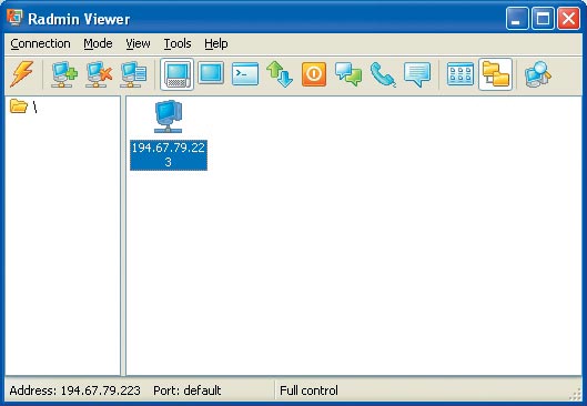 Наиболее удобно обращаться к удаленному ПК в полноэкранном режиме. При этом у вас возникает ощущение, будто вы сидите за своим компьютером и вам не нужна прокрутка, чтобы увидеть всю площадь Рабочего стола. А в более ранних версиях этой программы до входа в полноэкранный режим приходилось применять комбинации «горячих» клавиш, чтобы суметь благополучно выйти из него и вернуться к Рабочему столу «близкого» ПК. Однажды я почти 10 мин переходил от управления удаленным компьютером к управлению своим. В новой версии таких затруднений не возникает, поскольку добавлена весьма информативная и удобная всплывающая панель. Также порадовала меня функция передачи регистрационного ключа на сервер Radmin удаленного компьютера, которая выполняется несколькими щелчками мыши.