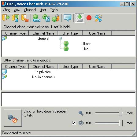 При создании нового канала допустимо задать его тип (открытый или конференция) и пароли (пользовательский и операторский) для его защиты. На открытых (public) каналах все пользователи могут говорить одновременно, а на конференц-каналах (conference), служащих для организации виртуальных совещаний, обсуждений, брифингов и прочих схожих задач, только по очереди.