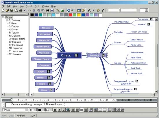 Подводя итог личным впечатлениям от работы с программой, отмечу, что она ни в коей мере не ограничивает творческий позыв раскрасить все в холодные или теплые цвета, придать ветвям некую причудливую форму или нарисовать какой-либо экзотический знак. Пожалуй, ConceptDraw MindMap дает возможность сообщить интеллект-карте более эмоциональную окраску, чем это можно было бы сделать на листе бумаги только с помощью цветных фломастеров.